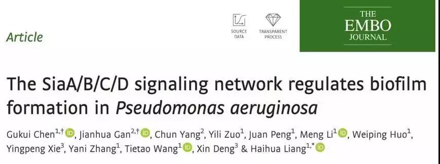 2020年2月24日,公司西部资源生物与现代生物技术教育部重点实验室梁海华教授团队在EMBO J上发文:The SiaA/B/C/D signaling network regulates biofilm formation in Pseudomonas aeruginosa,研究揭示了铜绿假单胞菌生物被膜形成的信号通路,及其调控过程。