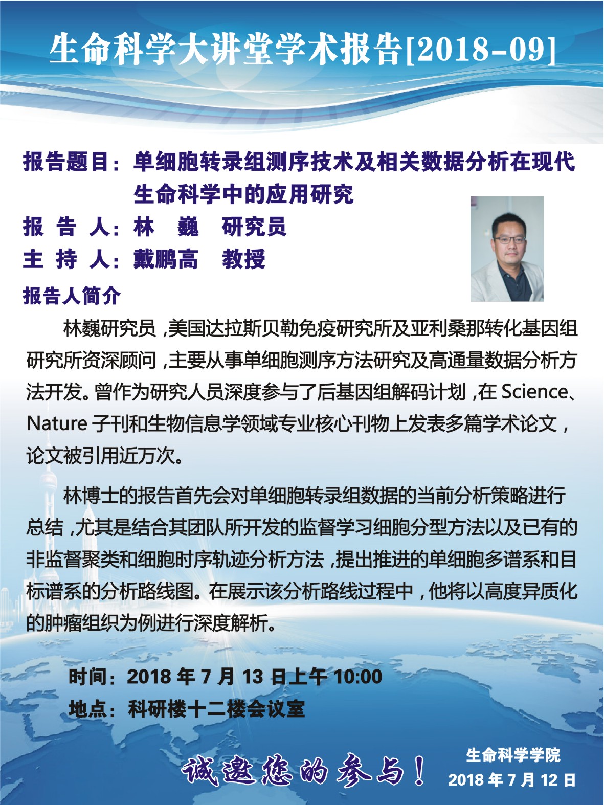生命科学大讲堂学术报告(2018-09)