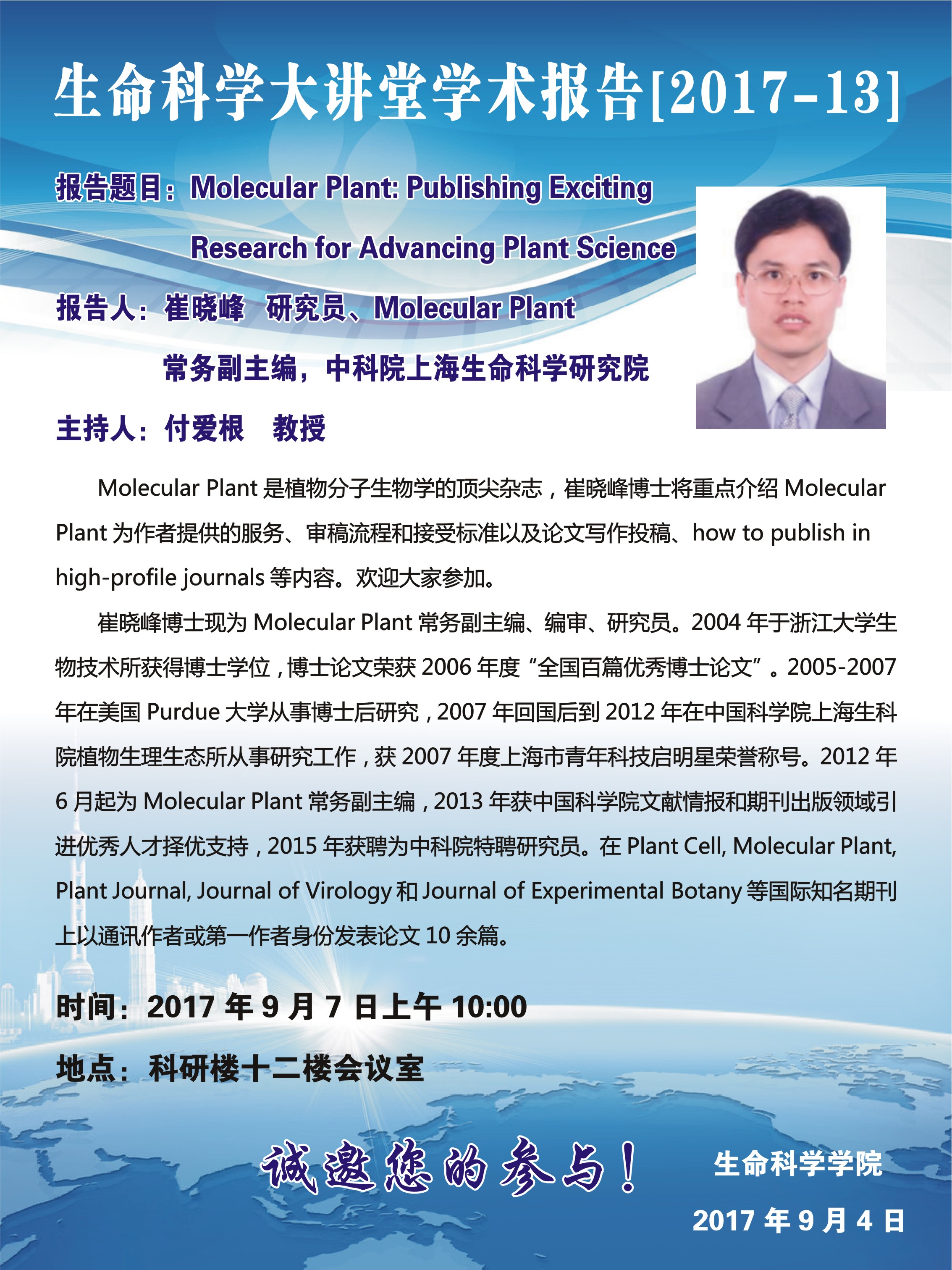 生命科学大讲堂学术报告【2017-13】