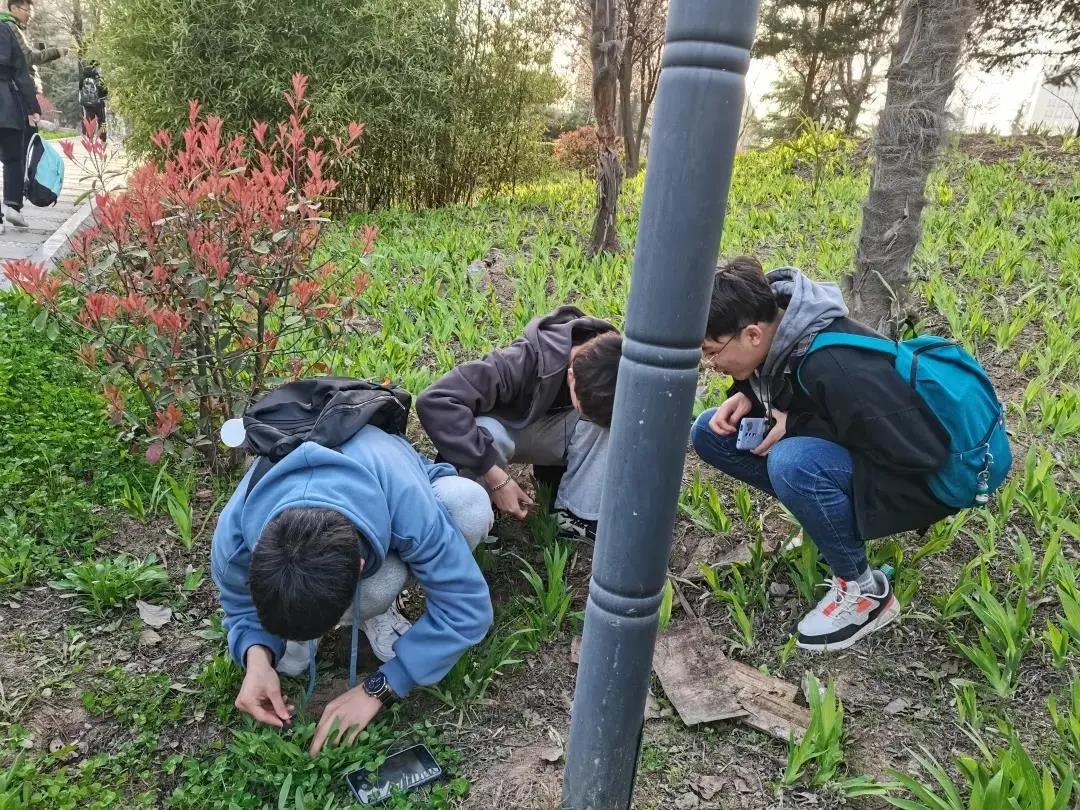 学子欣欣觅虫趣,不畏路险斩荆棘。”
