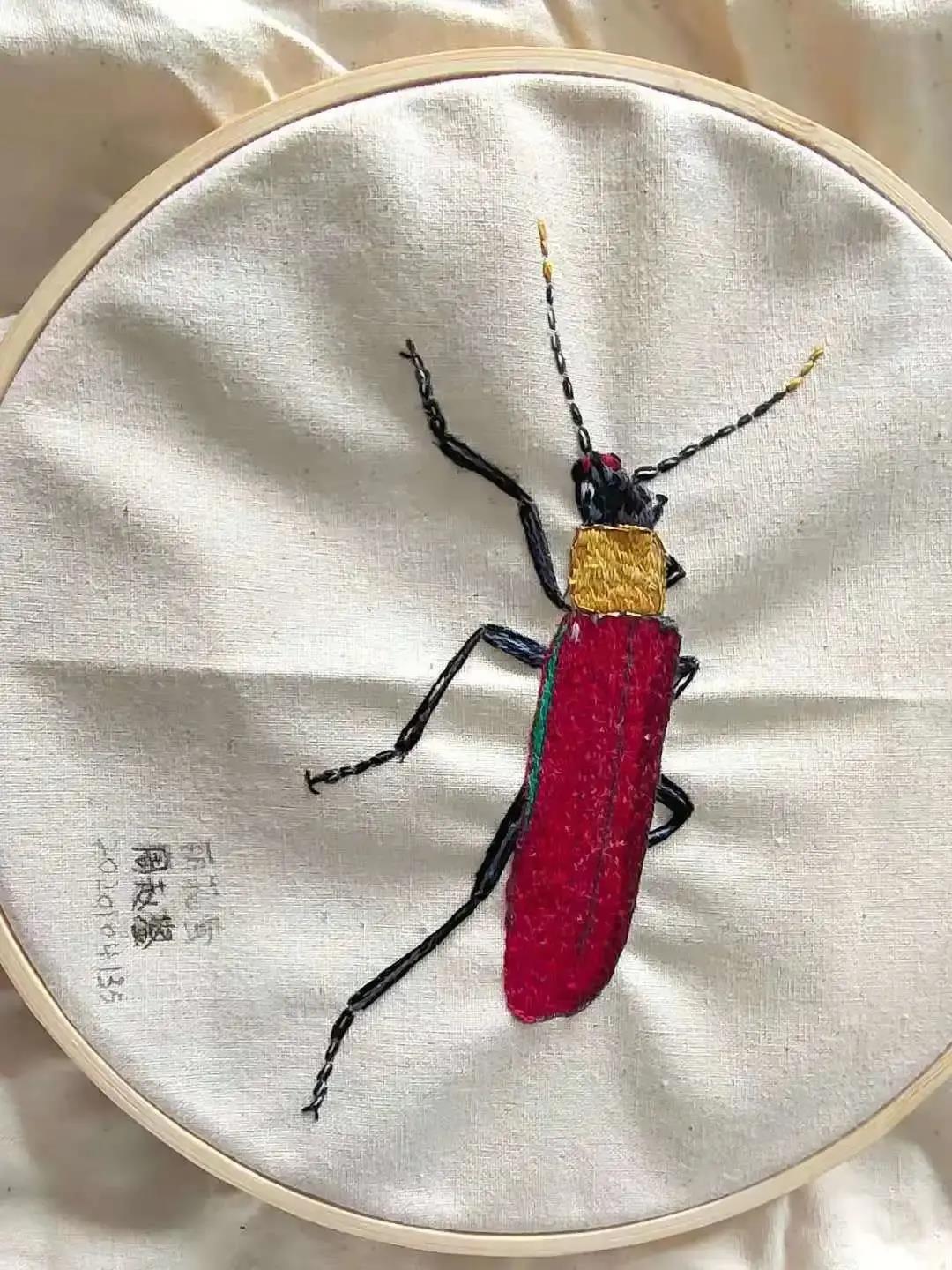 每学期谭老师还会要求同学们尝试以昆虫为主题作画。她会教给同学们画昆虫的口诀,按照口诀描摹出昆虫的轮廓后,通过描点来表现出视觉效果上的明暗。“每次看到同学们的作品,我都感到很惊讶,我觉得大家画得实在太好了。还有同学交给我的作品是刺绣、3D打印作品。”谭老师自豪地说。