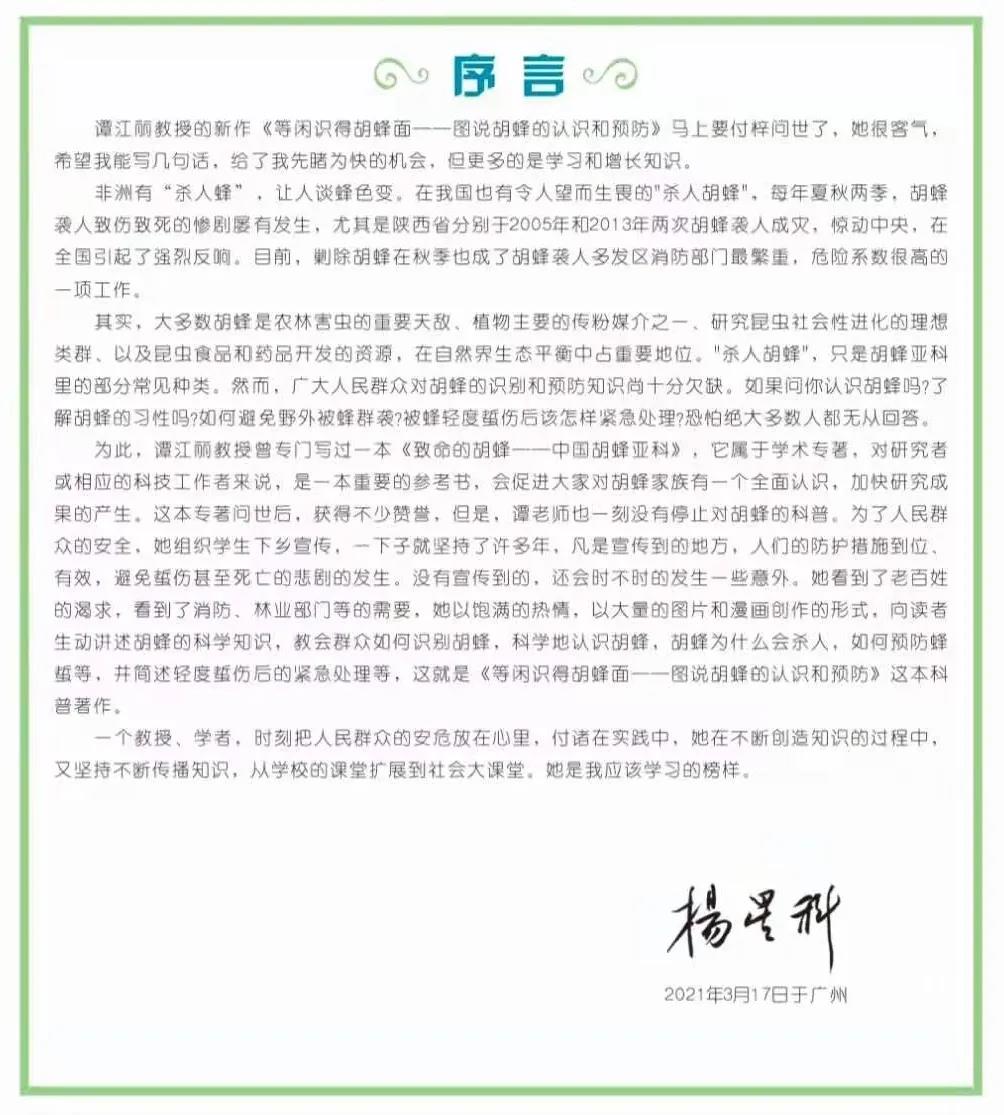 但胡蜂研究总是伴随着危险。在一次野外实习中,谭老师不慎被胡蜂蛰伤,并不是高度过敏体质的她突然产生了严重的高度过敏反应,眼花无力随后晕倒。同行的师生赶忙把谭老师送到医院急救。这次经历之后,很多人都认为谭江丽老师不会再研究胡蜂,但她仍然坚守初心,并致力于胡蜂分类学的研究。