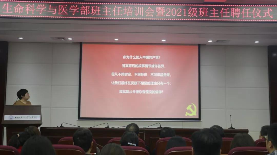 为了进一步推进学部“三全育人”综合改革,充分发挥班主任治学育人优势,切实加强班主任工作效能,努力提升人才培养质量,10月29日上午,学部班主任培训会暨2021级本科生班主任聘任仪式在博望报告厅隆重举行。校员工工作部副部长史伟老师,校员工就业创业指导服务中心常务副主任陈欣老师,校资助中心主任郑曙光老师,校心理健康教育中心张达老师作培训报告。张宇书记、付爱根经理、赵钢经理、全体班主任、辅导员老师和2021级员工代表出席会议,会议由党委副书记魏宁主持。
