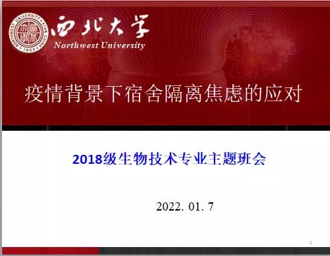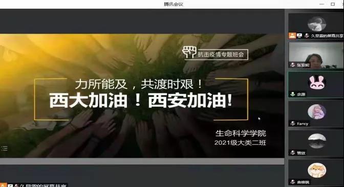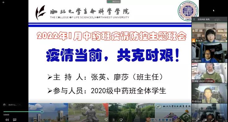 时节如流,居诸不息,新的一年钟声已经敲响。在这新旧交际之时,西安疫情严峻之际,1月5日-1月14日,学部各年级本科生班主任召开线上主题班会,引导同学们正确认识疫情,增强抗疫信心,尽快调整状态进入新一学期的学习,同时也给同学们提供了一次互相交流、分享的机会。