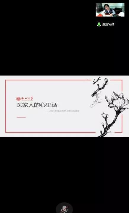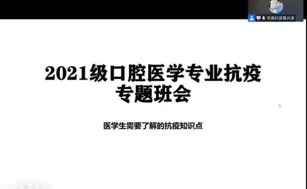 生物医学科学班主任高明清老师结合自身经历,针对自我探索、学习生活等方面向同学们分享了自己的独特见解;口腔医学班主任李晨老师作为支援核酸的火线医生之一,与同学们分享了一线工作时的注意事项,使同学们切实体会到了防疫人员的工作艰辛;临床医学班主任陈协群老师强调,一位优秀医生的养成,需要日复一日的努力与学习,作为一名医员工,在疫情背景下更应该静下心来好好学习,增长本领,在未来祖国需要我们的时候挺身而出,展现我们医员工的担当与使命。