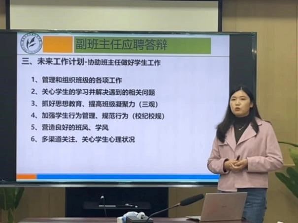 魏宁副书记首先肯定与感谢了各位报名老师对员工工作和班主任工作的大力支持,介绍了公司班主任工作的整体情况,说明了选聘答辩的流程与评分标准。随后,9位申报老师依次进行选聘答辩,分别从个人基本情况、对员工工作的认识、对班主任工作的理解及未来工作计划等几个方面进行陈述,与会评委结合竞聘老师自述,围绕副班主任工作定位,针对思想教育与价值观引导、学风建设、学业规划与帮扶、专业兴趣引导、谈心谈话技巧、班风营造、科研训练、员工不良情绪应对等问题进行提问,竞聘老师积极回应,答辩氛围热烈。最后,与会评委根据竞聘老师的自述与答辩情况进行现场评分,初步确定了拟选聘2023级本科生副班主任名单。