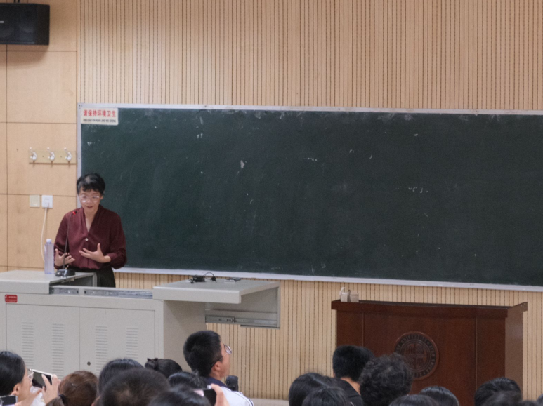 朱宏莉教授向新生们介绍了生物技术系的历史沿革、专业特色以及微生物功能基因组、基因检测、预防基因组、纳米生物学和糖生物学等主要研究方向。