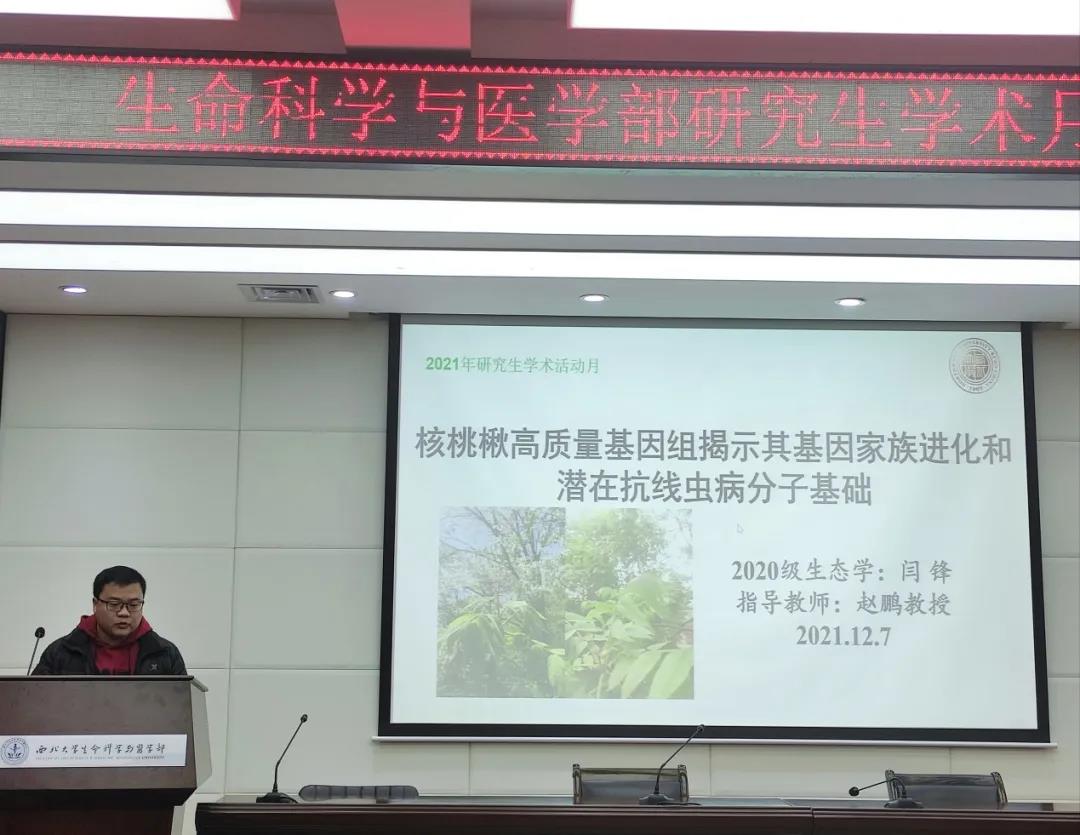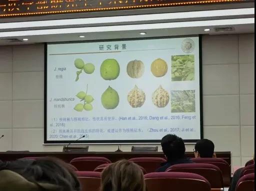 2020级生态学博士闫锋同学带来题为《核桃楸高质量基因组揭示其基因家族进化和潜在抗线虫病分子基础》的学术报告。介绍了核桃楸与核桃的差异性以及核桃楸的基因家族进化,并且概括了核桃楸在抗线虫病方面的分子机制。