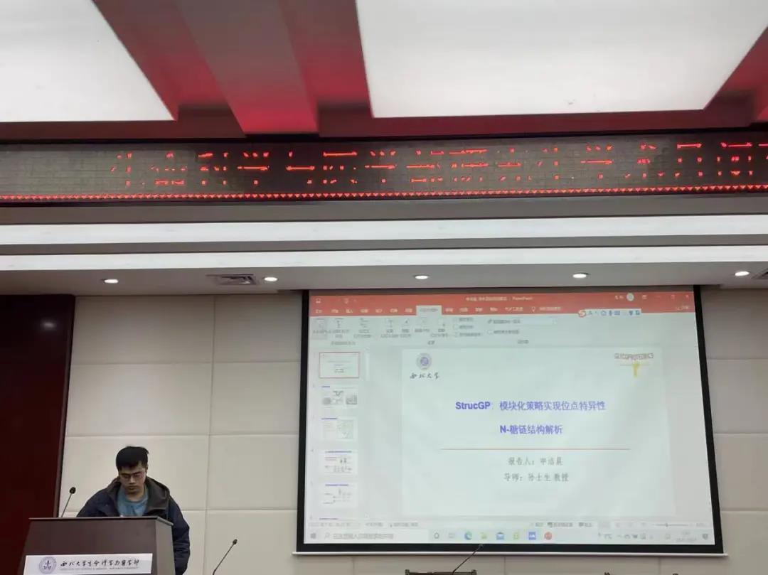 2020级生物化学与分子生物学博士申洁晨同学带来题为《StrucGP:模块化策略实现位点特异性N-糖链结构解析》的学术报告。介绍了StrucGP解析N-糖链的原理,以及其相较于其他的解析软件的优势所在。
