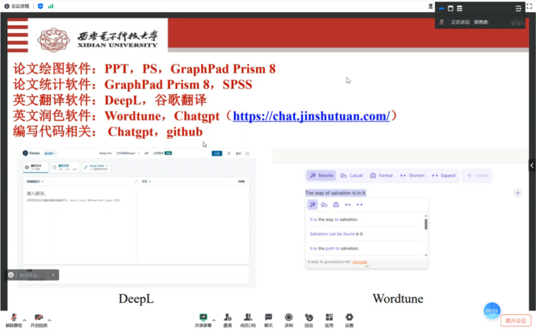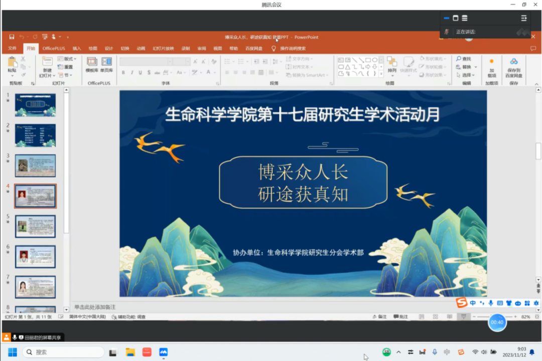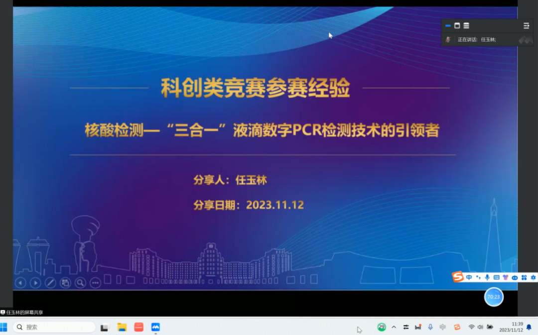 秦培岩从自身科研经历出发,结合科研过程中的实践经验,讲述学术搜索的一般思路与具体流程,分享比较常用的学术搜索引擎、学术资源网站等;丰晶晶就研究生就读期间的科研经历,分享了在科研道路上可能会遇到的共性问题及解决方法;葛婉仪从培养科研习惯的重要性、瓶颈突破的关键技巧及科研心态等方面进行交流分享;郭勇建通过对自身科研经历的剖析解读,总结并分享了常用的数据处理软件与数据分析方法,建议要养成持续读书的良好习惯;李茵总结了分析实验数据的技巧与前人经验,从实验分组、数据预处理、SPSS分析与GraphPad作图四个方面详细介绍数据处理过程中可能出现的问题及规避方法;徐维维以多模态融合脑机接口的手功能康复机器人项目为例,阐述了在创新创业类大赛中如何撰写优秀的商业计划书,从市场与商业模式角度给出了自己的宝贵经验;任玉林以自己所参与的核酸检测——“三合一”液滴数字PCR检测技术项目课题为依托,讲述了参与科创类竞赛的流程与各项重要事件节点,分享了项目计划书撰写、项目展示与答辩等方面的经验。