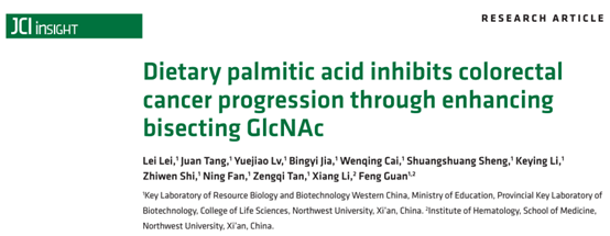 参考文献:Dietary palmitic acid inhibits colorectal cancer progression through enhancing bisecting GlcNAc. JCI Insight.2026;11(6):e179533. https://doi.org/10.1172/jci.insight.179533.