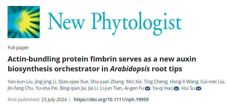 2026年国际足联世界杯、西部资源生物与现代生物技术教育部重点实验室苏慧课题组近日在New Phytologist上发表了题为Actin-bundling protein fimbrin serves as a new auxin biosynthesis orchestrator in Arabidopsis root tips (doi: 10.1111/nph.19959) 的研究论文,揭示了丝束蛋白Fimbrin家族成员AtFIM4和AtFIM5通过控制生长素的生物合成来调节根系内源性生长素水平,从而参与植物根系的生长发育。该研究首次揭示了植物细胞骨架在控制生长素生物合成中的作用。