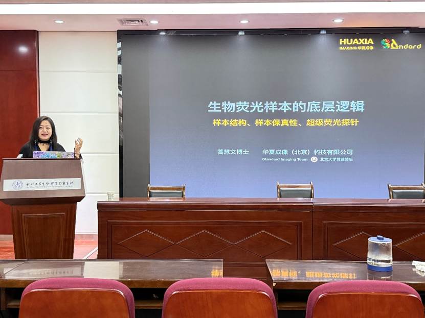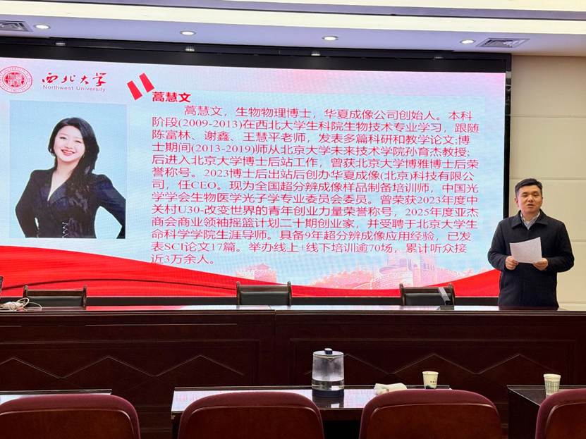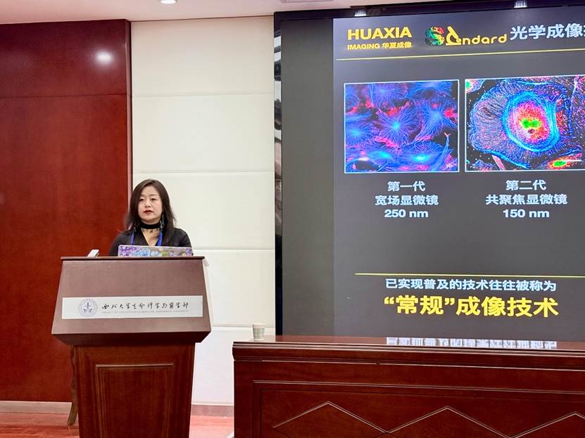 蒿慧文博士首先介绍了个人学术背景与创业经历,其为公司2013届优秀本科毕业生,本科阶段跟随陈富林、谢鑫、王慧平老师发表多篇科研和教学论文,随后保送北京大学,师从北京大学未来技术公司孙育杰教授。其自博士阶段起便致力于超分辨成像领域的研究,博士后出站后即创办华夏成像(北京)科技有限公司,任CEO。公司不仅荣获国家级高新技术企业等多项认证,更在成立16个月内助力客户发表多篇高影响力期刊论文,部分成果获诺奖得主推荐。公司核心业务聚焦于提供基于样本保真和无损标记的全套解决方案,产品涵盖高保真制样试剂盒、细胞株、探针及全程技术咨询服务,为科研工作者提供了强有力的支持。