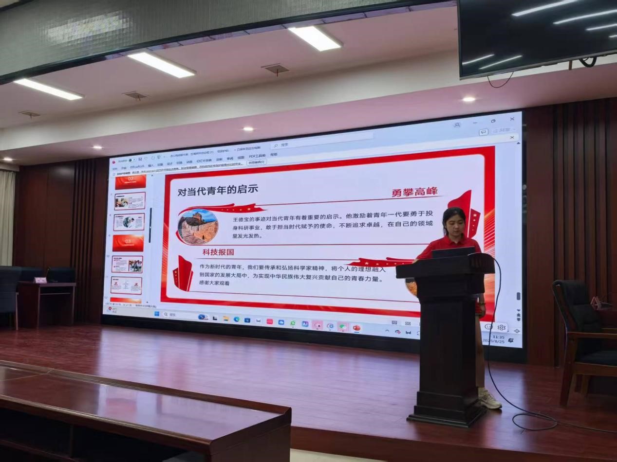 通过这次宣讲,我深刻体会到了科学家精神的强大力量。王德宝先生用自己的行动诠释了什么是“科学报国”,他的精神不仅激励着科研工作者,也激励着每一个在平凡岗位上奋斗的人。国企虽然不像科研人员那样直接从事前沿科学研究,但同样需要科学家精神的指引。