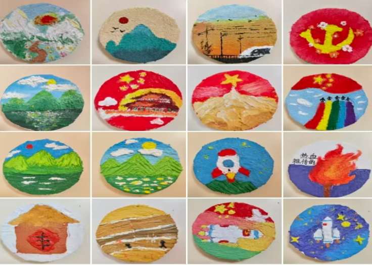 本次活动以石英砂肌理画为创新载体,巧妙融合艺术创作与党史学习教育,借助独特的砂画艺术形式,生动展现国家在各领域取得的发展成就,呈现新时代精神风貌与未来发展蓝图。活动现场,“红色基因”宣讲团成员首先开展了“初心讲述”微宣讲,以鲜活的故事与深切的感悟为活动拉开序幕。随后,126名同学以小组为单位,围绕党史重要事件、“十四五”建设成就、“十五五”发展愿景等核心主题展开创作,相关作品主题鲜明、构思精巧、风格多样,吸引了大量师生驻足观赏。现场创作结束后,公司通过官方微信公众号发起线上投票,49幅作品进入投票环节,累计吸引16164人次参与投票环节,最终评选出一等奖1项、二等奖2项、三等奖3项、优秀奖若干,并对获奖作品进行集中展示。