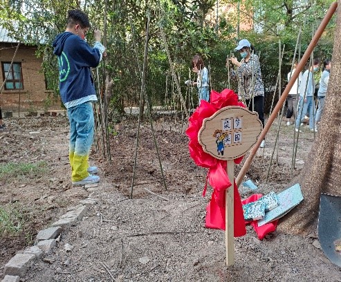 活动开始,与会人员共同为“筑梦菜园”“筑梦花园”揭牌。严兴荣教授为党员代表发放劳动育人手册,刘文哲讲授现场讲解了植物的生长习性和培植方法。魏宁副书记发表致辞讲话,希望员工党员珍惜劳动教育机会,通过劳动实践培养劳动技能,磨练意志,树立劳动最光荣、劳动最崇高、劳动最伟大、劳动最美丽的观念。揭牌仪式结束后,员工党员分组开展种植活动,发放竹竿、尼龙绳、铁锨、锄头等劳动工具,同学们相互配合翻地、浇水、编制篱笆,将硫华菊、格桑花、孔雀草、百日草花种种植在“筑梦花园”,后期通过移苗形成党徽造型;将茄子、朝天椒、黄瓜、番茄菜种播种在“筑梦菜园”,期待收获劳动果实。“筑梦先锋”本科生党支部近期将在观音山国家级自然保护区建立“筑梦”党员初心林,每年组织毕业生党员开展植树挂牌活动,既是一份特殊的毕业礼物,也毕业前最后一堂劳动教育实践课,让毕业生党员留下难忘的劳动记忆。