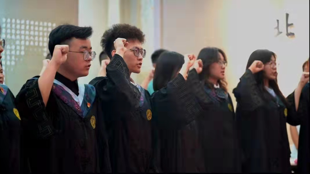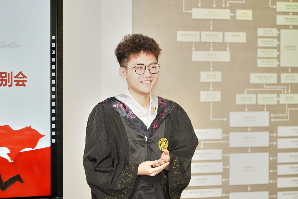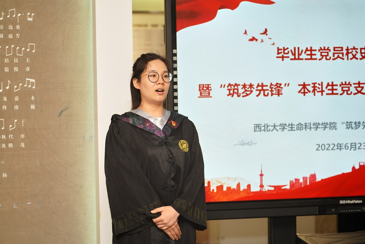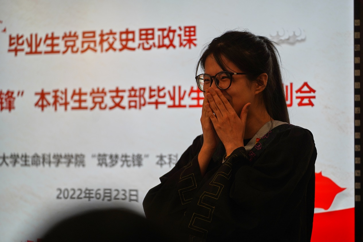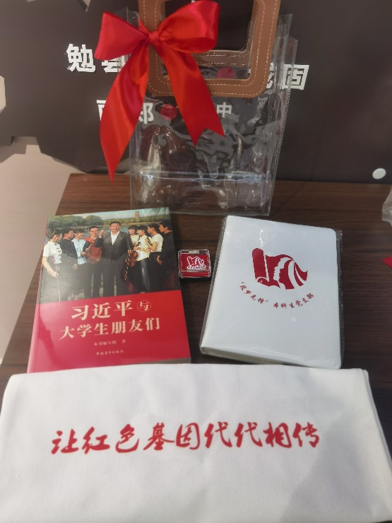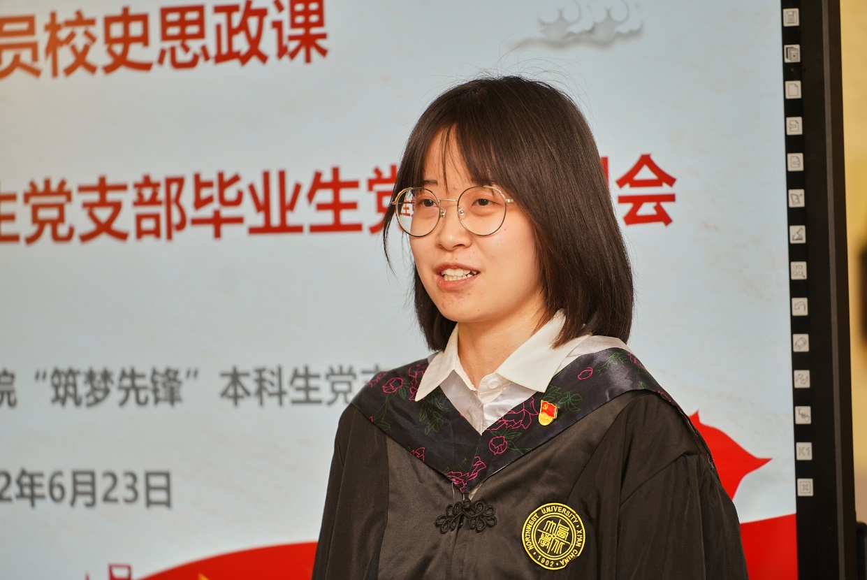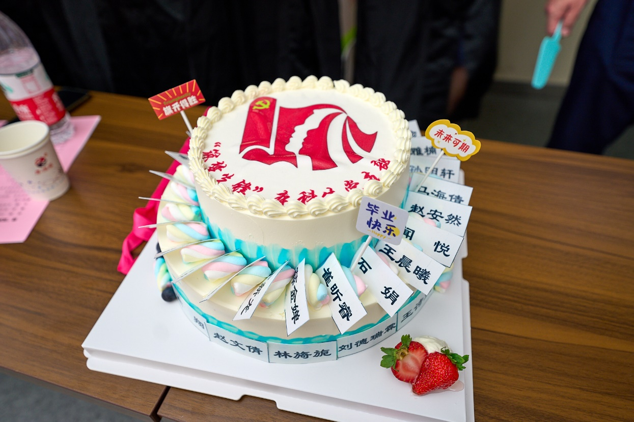 会议伊始,毕业生党员代表赵安然带领与会人员面向鲜红的党旗重温入党誓词,“我志愿加入中国共产党,拥护党的纲领,遵守党的章程......”,毕业生党员在毕业之际再次举起右拳庄严宣誓,一字一句铿锵有力,共同追溯入党初心。随后,大家共同观看短片《红色基因是你最鲜亮的底色——给2018级毕业生党员的一封信》,回顾了四年来在党组织内的成长与蜕变。王诗益、郝嘉悦等8位毕业生党员代表分享“我的筑梦时光”,回忆了在母校度过的美好时光,表达了对母校教育、党组织培养的感激之情,纷纷表示,会牢记母校教诲,在新的征途上继续不懈奋斗,担起时代重任。临别之际,毕业生与师长、学弟学妹互赠寄语,共忆校园时光,展望美好未来。常江副董事长等和员工党员共同切开毕业蛋糕,并为同学们发放毕业纪念品,此次毕业纪念品由“筑梦先锋”本科生党支部低年级党员精心设计准备,包括支部徽章、定制笔记本、定制帆布袋以及《习近平和老员工朋友们》一书,希望毕业生党员始终牢记习近平总书记对青年一代的殷切期望,努力成长为有理想、敢担当、能吃苦、肯奋斗的新时代好青年,用奋斗践行“请党放心、强国有我”的青春誓言。