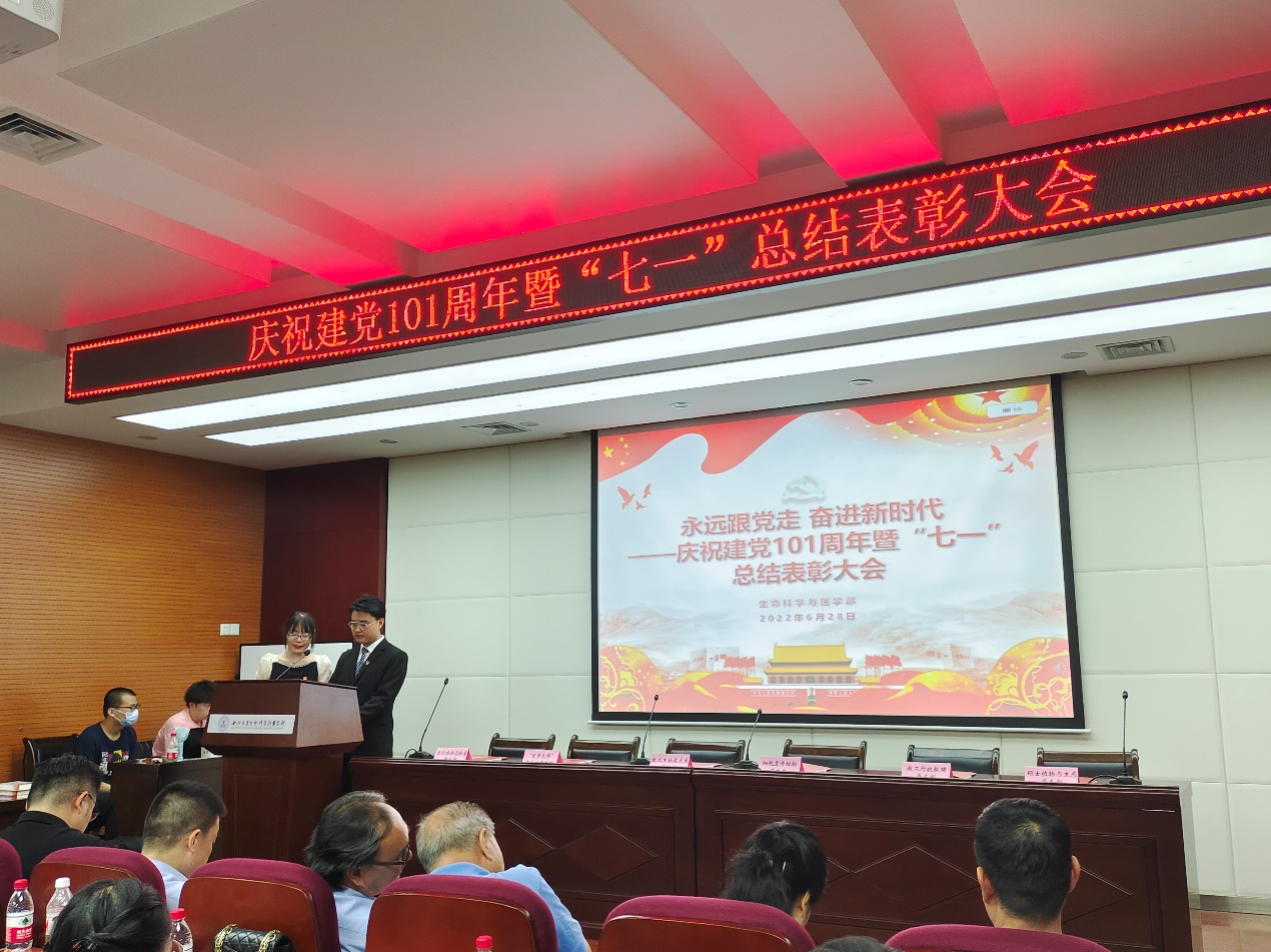 6月28日上午,生命科学与医学部在博望报告厅举办“永远跟党走 奋进新时代”庆祝建党101周年暨“七一”总结表彰大会,公司党政班子、党委委员、党支部书记、党员代表参加会议。