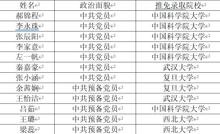 9月28日,众多学子翘首以盼的推免结果出炉。“筑梦先锋”本科生党支部27名党员、入党积极分子顺利推免至复旦大学、武汉大学、浙江大学、中国科公司大学等国内双一流高校及高水平科研院所。现将推免结果展示如下: