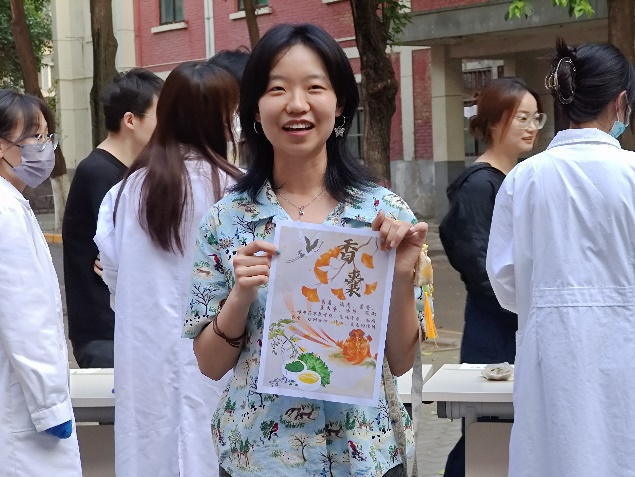 活动伊始,主持人为在场同学详细介绍了活动背景,并对活动的整体流程以及比赛的评判标准进行阐述。随后,同学们积极参与到香囊制作环节中,他们充分发挥团队协作精神与专业技能,巧妙地将各种中药材进行搭配组合,制作出一个个既美观又实用的香囊作品,有的具有助眠安神功效,有的能够驱蚊防虫,有的具备疏肝解郁的疗效。最后,两个参赛小组的组长分别上台分享了他们的创作成果。楚越组以菖蒲、远志、藿香、薰衣草、冰片和花椒为原料,制作了一款具有清心提神效果的香囊。而石贤钢组则选用了白蔻、薰衣草、远志、藿香、肉桂和冰片等药材,打造出了一款安神助眠的香囊。他们希望通过这些香囊,帮助人们达到神志清明、心神宁静的境界。此次活动吸引了近三百名同学积极参与,共收到87份充满创意与匠心的海报和香囊作品。