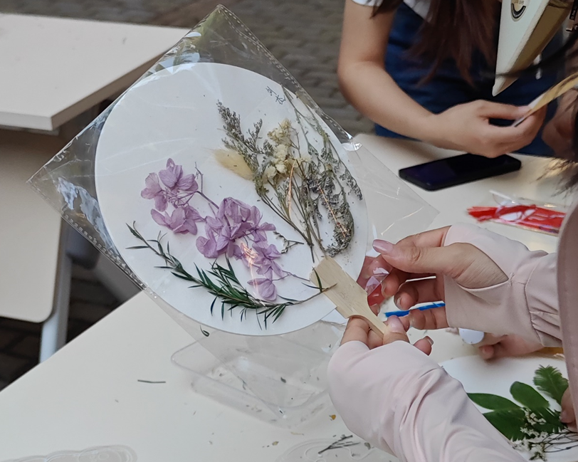 本次活动为公司党委“一站式”员工社区“红色手工坊”第二期,通过将传统扇艺文化与植物贴画艺术巧妙融合,激发同学们对传统文化的现代诠释,对自然美学的深情致敬,增强青年学子对中华优秀传统文化的自豪感和认同感,培养文化自信,提升艺术修养,丰富生活情趣。