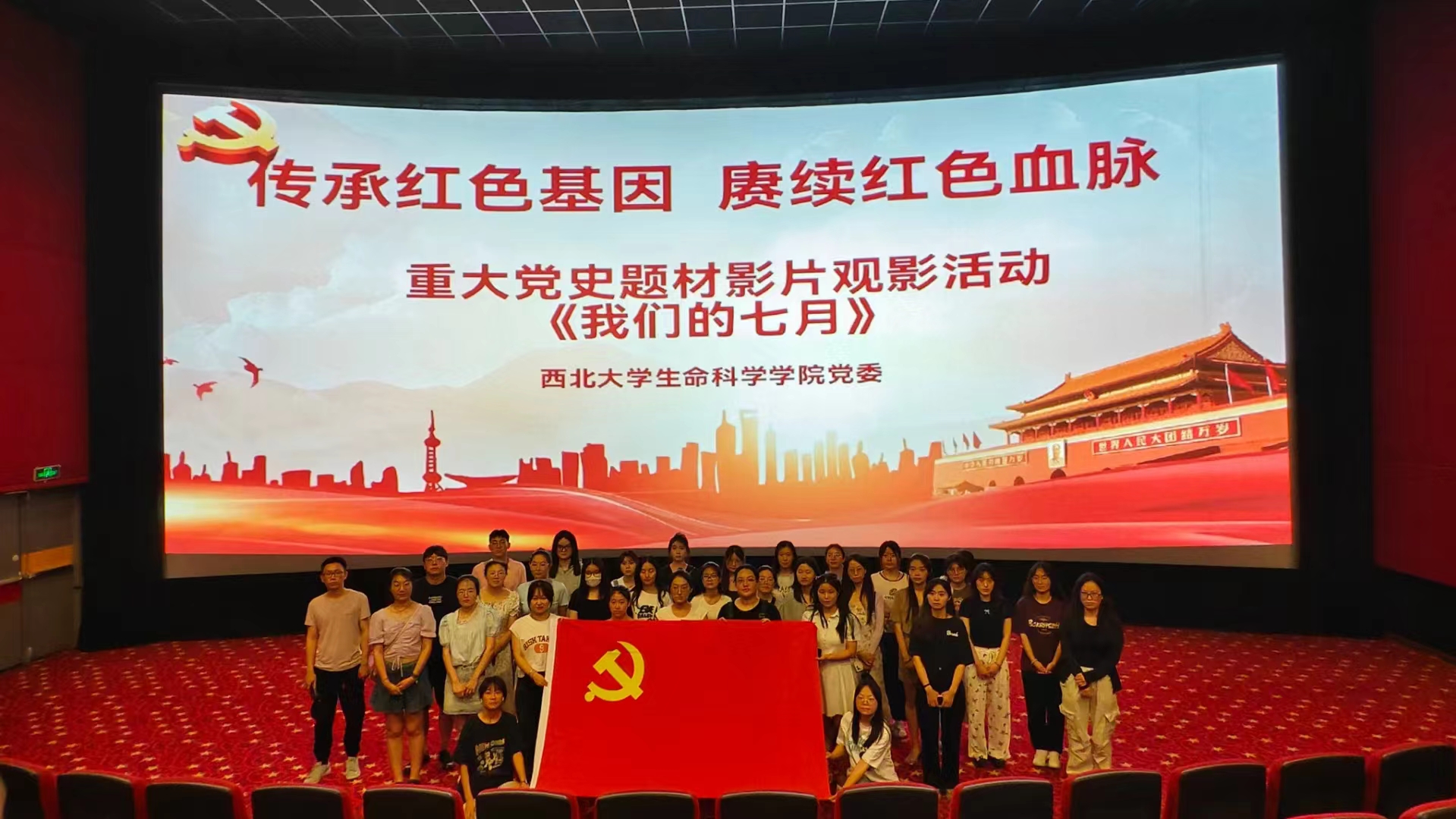 6月30日下午,组织50余名师生党员集中观看党史题材影片《我们的七月》。影片以扶眉战役为背景,以中国人民解放军第一野战军二兵团第4军11师33团副团长高增岳和他的战友等原型人物为代表,真实还原了扶眉战役的战斗过程。该片生动体现了党领导人民推翻反动统治,争取人民当家做主,建立社会主义新中国的光辉而又艰难的斗争历程,彰显了革命先辈矢志不渝、忠诚使命、忘我奋战、无私奉献的崇高精神境界,使师生党员接受了一次深刻的思想教育和精神洗礼。观影结束后,师生党员一行赴西安革命公园开展主题党日活动。“红色基因”党员宣讲团三位成员围绕“党史中的党纪”作主题微宣讲,深入浅出地阐述了党纪的重要性,回顾了中国共产党在各个历史时期坚持党要管党、从严治党的坚定决心和实际行动。随后参观《革命公园历史图片展》、革命亭、文化墙等,重温革命岁月,深切感受革命先烈们不畏艰难、不惧生死的伟大品格。