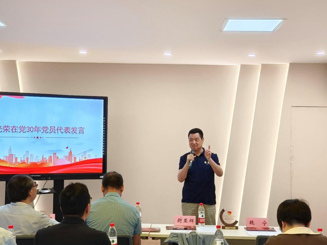 会议开始预备党员代表白雯同志带领全体党员重温入党誓词。刘小光书记宣读《公司党委关于表彰先进党支部、优秀共产党员、优秀党支部书记、优秀党务工作者、党务工作站优秀员工干部的决定》,与会领导为受到表彰的先进集体和个人颁奖,为“党员学导”、“启蒙党课”讲师团、“红色基因”党员宣讲团颁发聘书。随后,尉亚辉教授代表光荣在党30年党员发言,他表示,作为一名教育工作者和科研工作者,要始终为青年才俊的培养和国家的科技进步贡献力量,党员身份让他在科研道路上更加坚定,始终把服务人民放在首位,将个人追求与国家需要紧密结合。“红色基因”党员宣讲团李梓萌做“榜样引领前行,争做遵纪模范”主题宣讲,通过讲述革命先烈的英勇事迹,展示了中国共产党人坚定的理想信念和不屈不挠的精神,激励青年党员在实现中华民族伟大复兴的中国梦的征程中,发挥先锋模范作用。与会人员为党员过集体“政治生日”,实现“集体过生日,全员受教育”的目标。