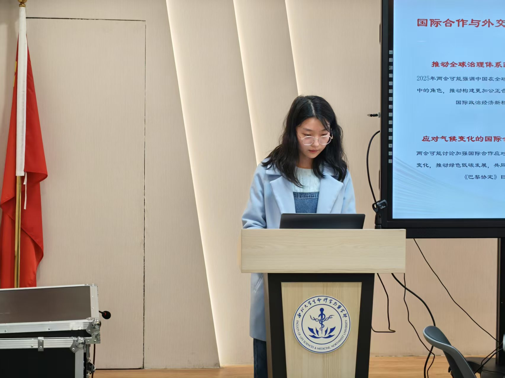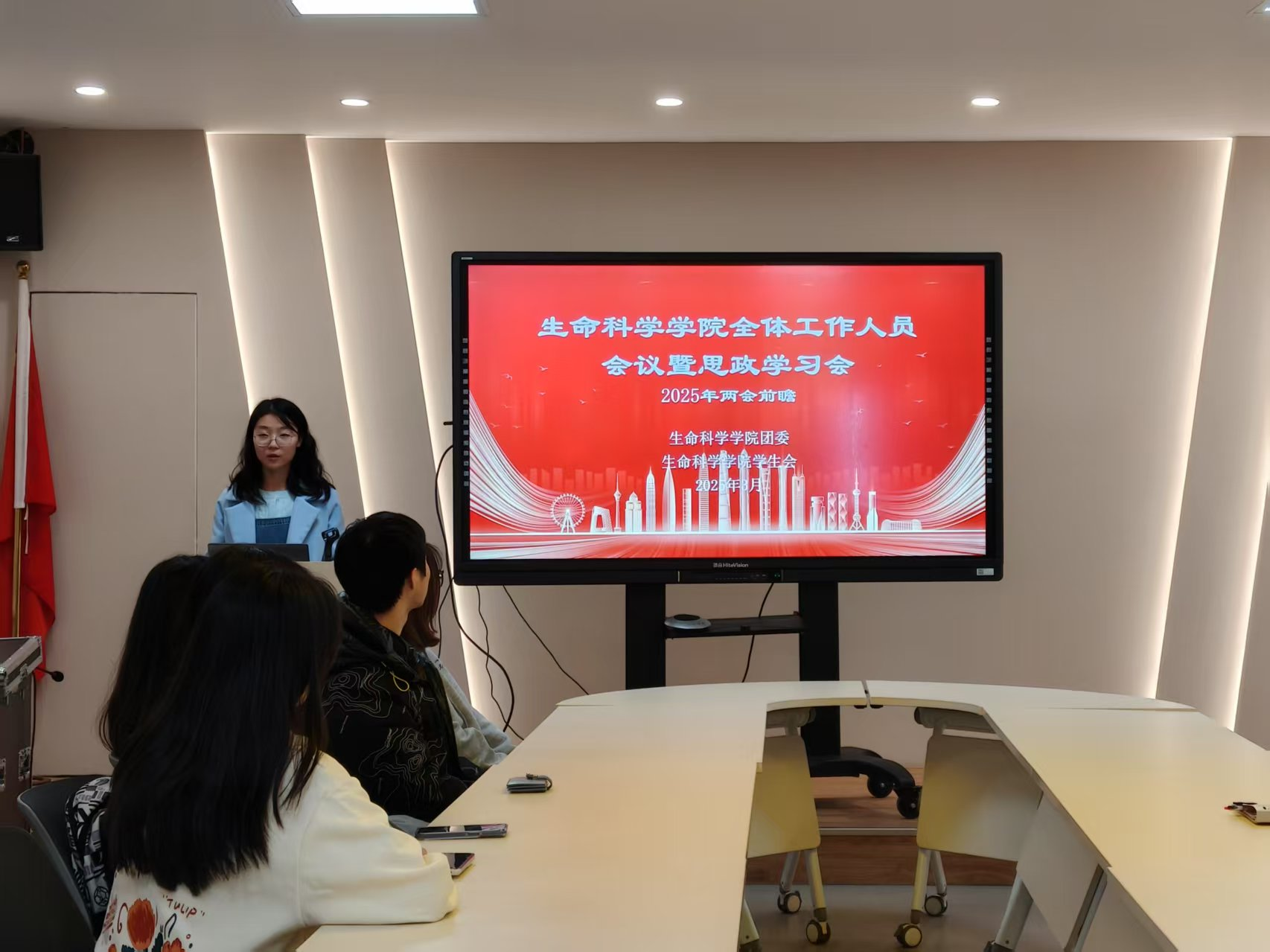 在学习讨论会上,领学王诗涵同学带领大家共同回顾了两会的核心内容,重点解读了政府工作报告中关于教育、科技、青年发展等方面的政策部署。她提到:“作为新时代的青年,我们要深刻领会两会精神,将个人成长与国家发展紧密结合,努力成为有理想、有本领、有担当的时代新人。”
