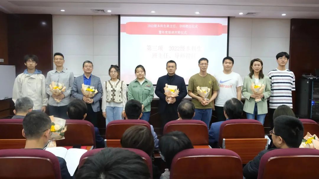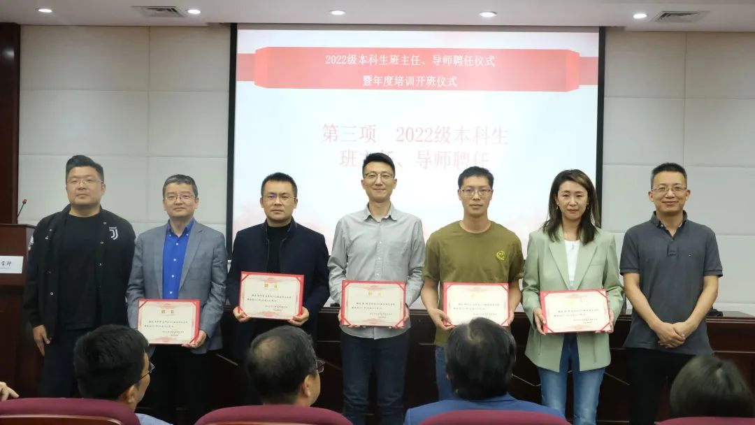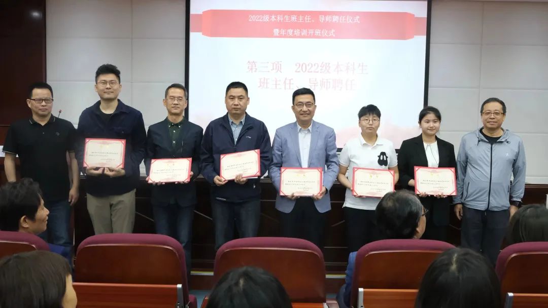 为进一步深化学部人才培养模式改革,加强本科生公司产品工作,切实提升本科生班主任、导师工作效能,全员联动促进员工全面发展、健康成长,4月17日,学部隆重举行2022级本科生班主任、导师聘任仪式暨年度培训班。校员工工作部副部长赵金哲、学部领导班子、全体本科生班主任、导师、辅导员老师及员工代表参加,仪式由党委副书记魏宁主持。