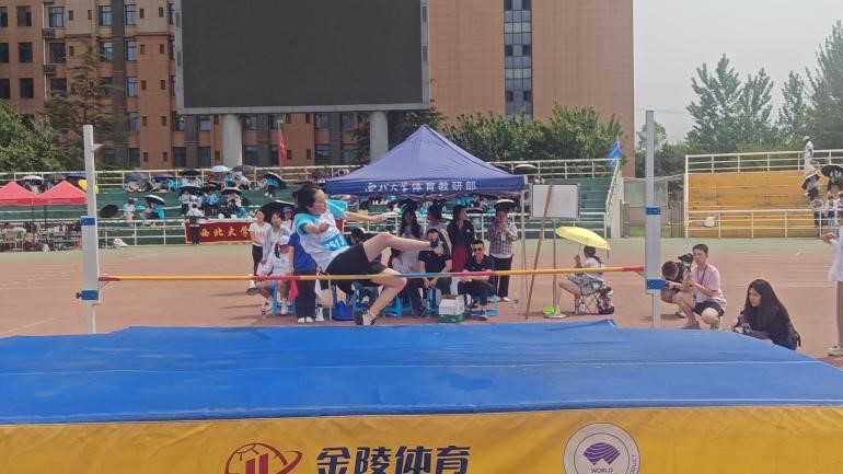 女子跳高中,生科选手赵芮深吸一口气,助跑、踏跳、腾空!背越式过杆瞬间,她身体弯成一道弧线,腰部几乎与横杆平行。落地时海绵垫扬起细尘,她翻身望向横杆——轻微颤动后稳稳停住!