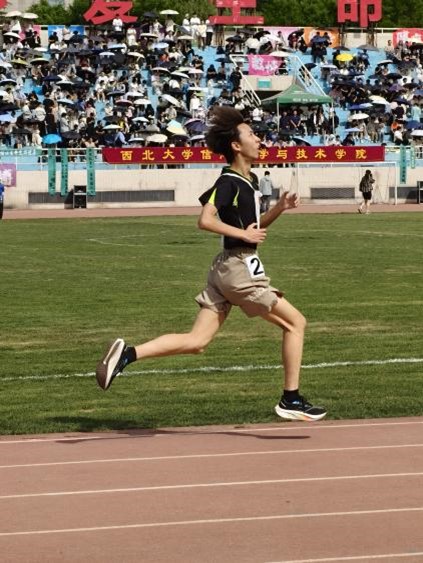 男子800米比赛中,生科王牌田明祥以绝对优势领跑全场。用坚定的步伐诠释着冲向终点的执着。撞线刹那,将所有拼搏铸成勋章。