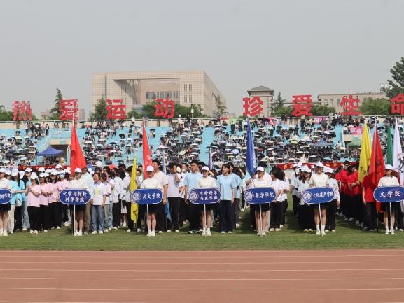 4月23日下午3点,开幕式在庄严的国旗护卫队行进中开启。各院系方阵依次入场,以创意与活力点燃全场。生科学子步伐整齐、口号嘹亮,身着象征活力的蓝白色服装,展现“探索生命奥秘、勇攀科学高峰”的精神风貌。