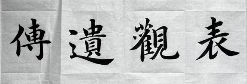 「传」:末笔枯润交织,似时间流逝中表观记忆的延续,墨色浓处如组蛋白修饰的恒定性,淡处若环境诱导的可逆性。