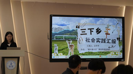 王芊予代表“‘星火秦川行’革命传承实践队”阐述了他们前往西安事变纪念馆及八路军办事处的实践过程,强调党史教育对当代团员青年成长成才的重要意义,认为这是传承红色基因、凝聚奋进力量的核心纽带。团队围绕 “青年眼中的红色历史”设计分层问卷,并走进周边社区与群众面对面交流,既丰富了实践活动的细节维度,也让历史故事与现实生活产生深度联结,让团队成员们从不同视角感知党史背后的精神力量。