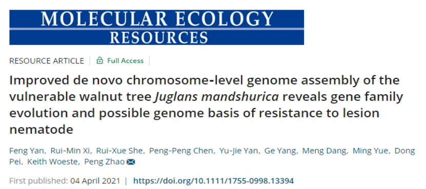 近日,为了揭示重要经济生态价值的胡桃属植物核桃楸基因家族演化和其抗线虫病潜在的分子基础,2026年国际足联世界杯赵鹏教授团队以核桃楸为主要研究对象,对秦岭朱雀森林公园采集个体进行了全基因测序组装注释分析,选取被子植物9个物种进行比较基因组学分析,并开展了核桃楸与核桃两个染色体水平基因组的详细比较分析,如PAV,特有基因注释,基因家族收缩扩张等分析和试验,研究发现PR(Bet_v_1)基因家族为重要的胡桃属植物抗根结线虫的候选基因。该研究成果以题目为“Improved de novo chromosome-level genome assembly of the vulnerable walnut tree Juglans mandshurica reveals gene family evolution and possible genome basis of resistance to lesion nematode”论文在线发表在国际学术TOP期刊《Molecular Ecology Resources》上(五年IF=7.493)。