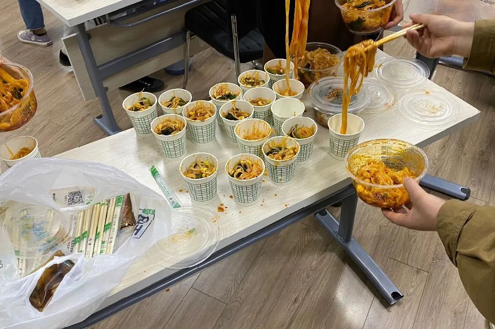 来自四川的尹忠山同学介绍了家乡的宜宾燃面,为了找到好吃地道的燃面,他说他自开学以来每周末都坚持在公司旁边的面馆吃面,为他的用心良苦点个赞吧。