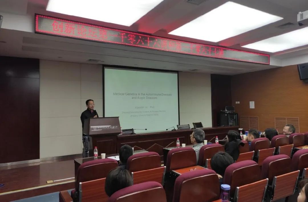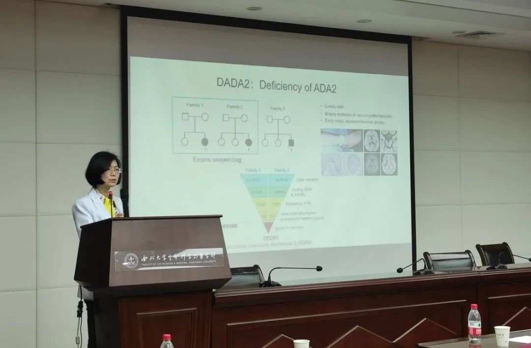 随后俞晓敏研究员作了题为“Medical Genetics in the Autoimmune Diseases and Atopic Diseases”的学术报告,主要介绍了四种基因,即 OTULIN,TPSAB1,PGM3和RIPK1的研究现状。俞晓敏老师通过多个家系找到遗传上的线索,确定致病基因,并从体外实验证明和分子生物学实验方法探究其致病机制,以找到有效的靶向治疗药物,这对于人类自身炎症性疾病的临床治疗具有重要意义。