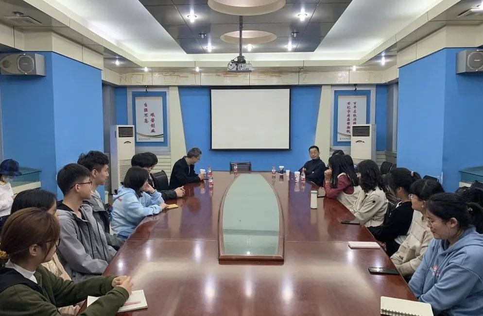 当日下午,周青老师、俞晓敏老师、关锋教授及公司十余名2018级本科生于文博一楼会议室进行座谈会。座谈会主要围绕员工保研、考研、导师选择等问题进行讨论交流。