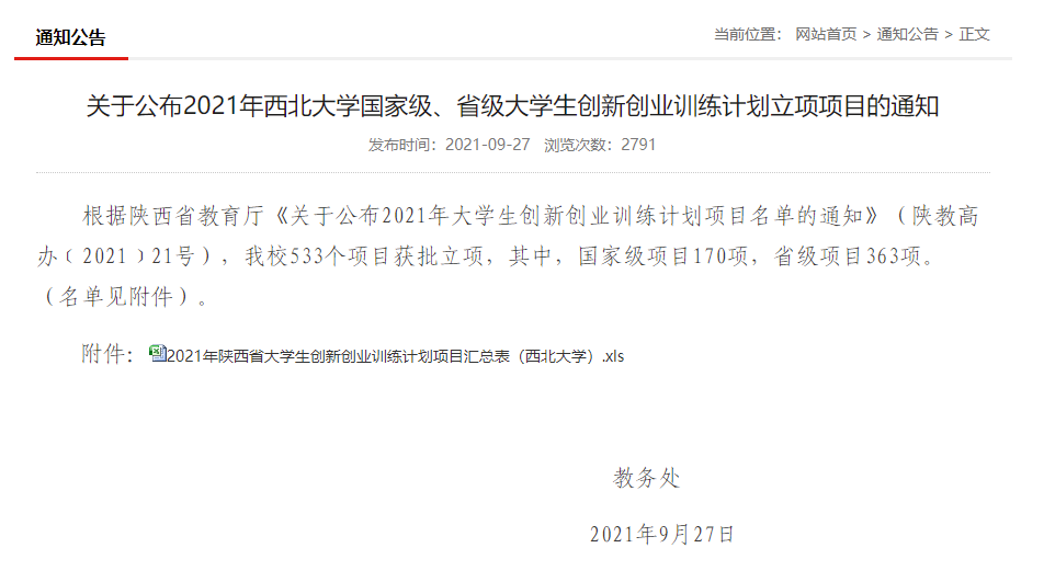 根据陕西省教育厅《关于公布2021年老员工创新创业训练计划项目名单的通知》(陕教高办﹝2021﹞21号),公司533个项目获批立项,其中,公司获批立项国家级项目10项,省级项目16项。