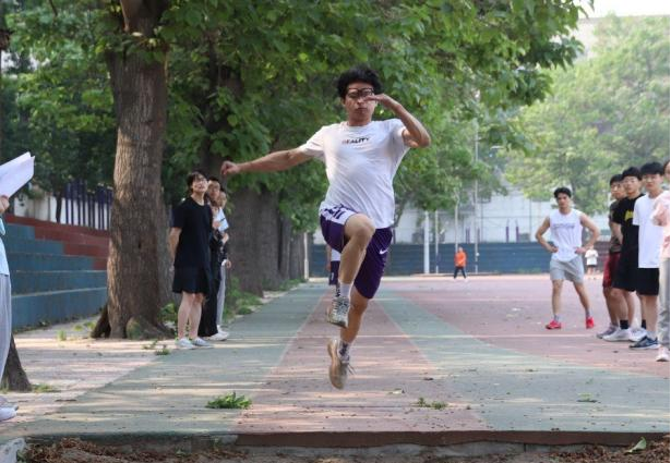 跳远比赛正式开始,公司的运动健儿们怀着紧张又期待的心情自信昂扬地走上赛场。离弦箭似的助跑,曲膝起势,奋力一跃,如鲤鱼跃龙门一般自信坚定;手臂后划,空中的走步表演,平稳着地,整套动作干净利落。裁判员的每一次拉线测量都聚集着选手和观众的殷切期待,运动员们每一次的蓄力和腾飞都是力量与技术的巧妙融合,完美地展现了我们生科学子的风采!