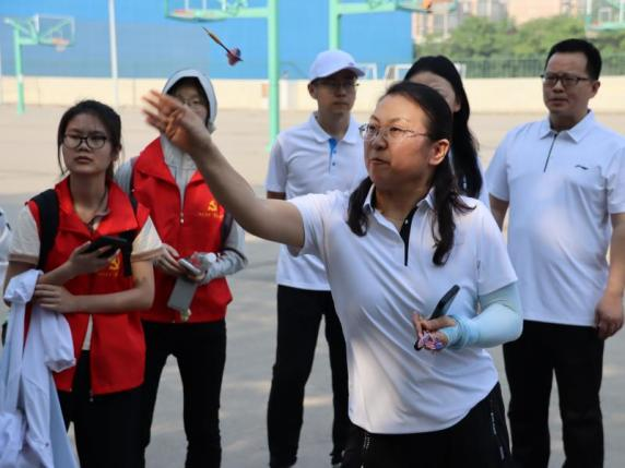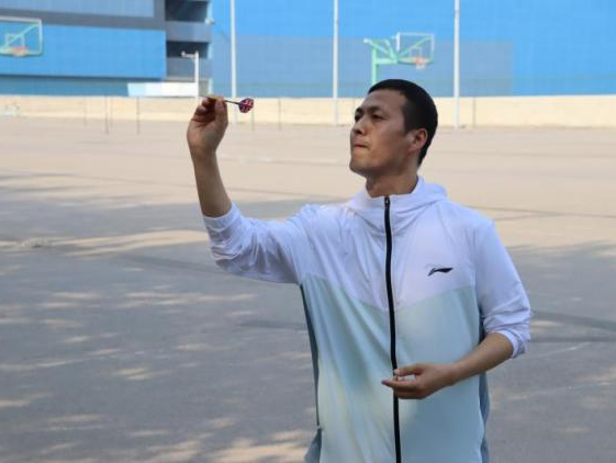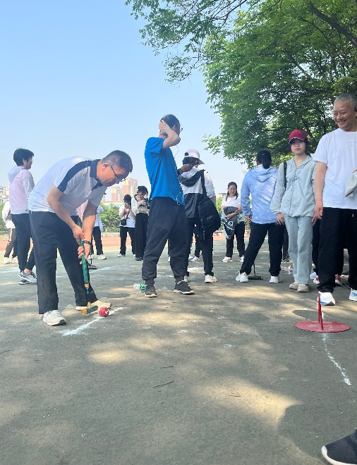 教工团体掷飞镖,飞镖从他们手上飞出,在空中划过一道美丽的弧线,借风而行,精准地命中了靶心。