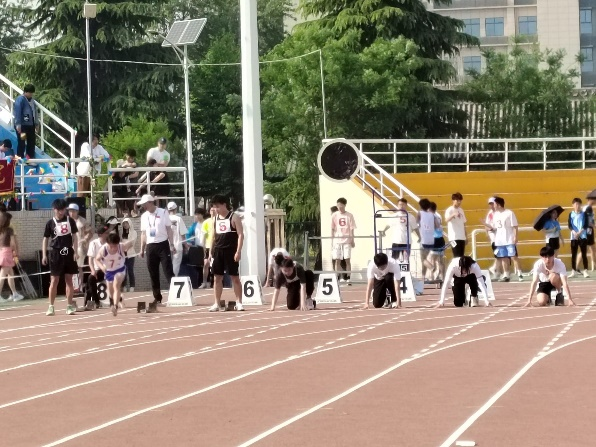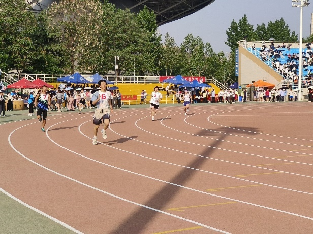 400m比赛是一项缺氧项目,具有较大的运动量和较大的能量损耗,既考验选手的耐力,又考验选手的速度。身前是400m的跑道,身后是昔日苦练的汗水和同学们一双双支持的眼睛,风采撒满跑道上,赛场佳绩美名扬!