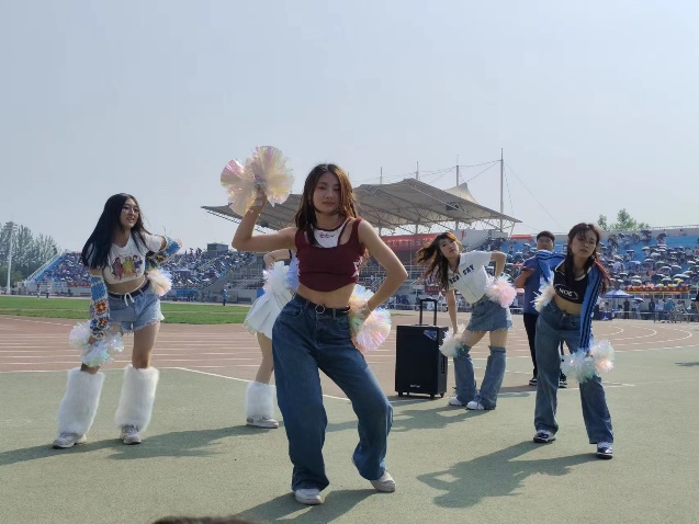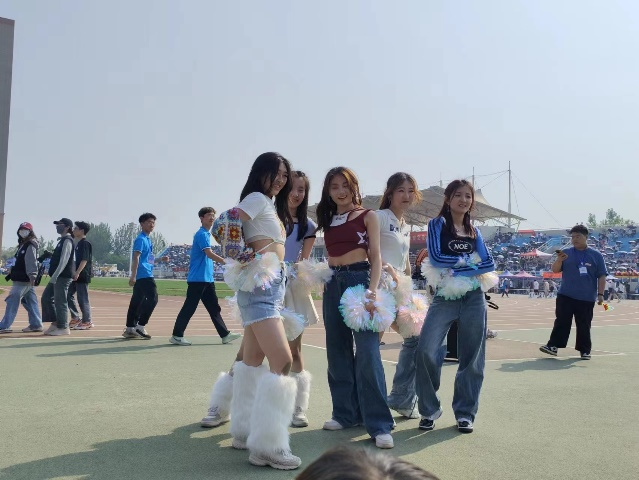 骄阳似火,公司员工会文艺部组织的啦啦操队依旧洋溢着青春的活力,迸射着生命的激情,为赛场上的同学加油。广受师生们的喜爱。