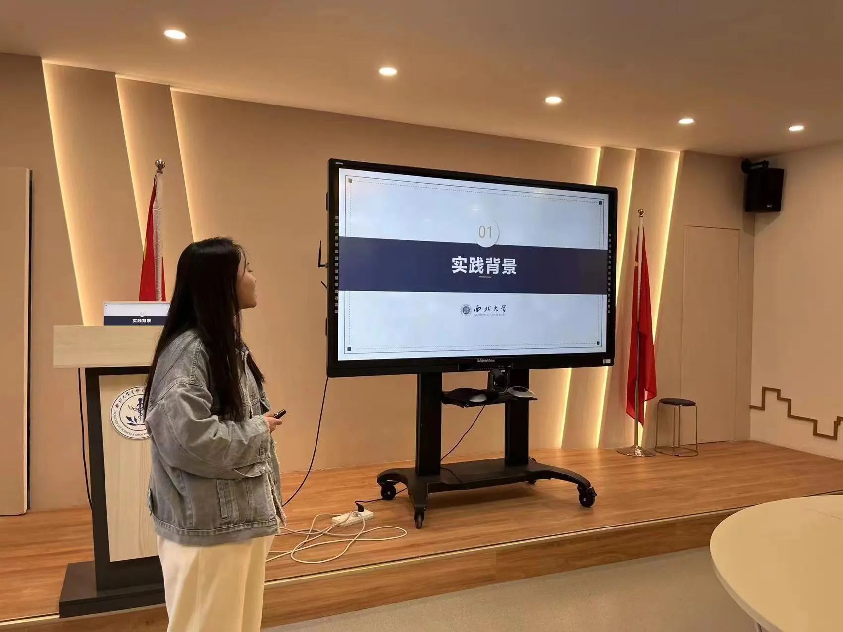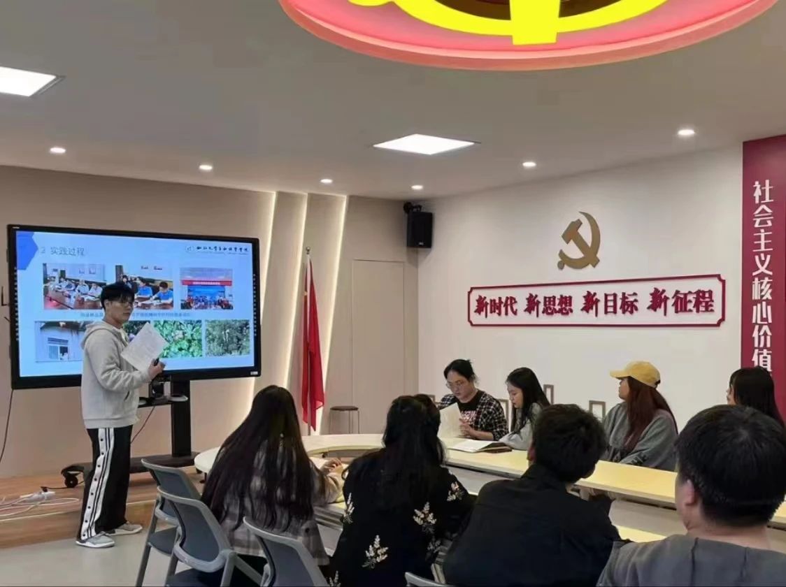 随后,由“以劳润心,守卫秦岭”——守望秦岭实践队,以“科技发展助力生态文明建设,为美丽中国建设奠定坚实的绿色根基”为主题,团队负责人马佳雨为同学们展示了团队前往陕西省牛背梁国家自然保护区的老林保护站所开展为期三天的暑期社会实践活动,围绕体验护林员工作、学习红外相机检测、教当地员工制作标本等活动,通过对护林员的专访,团队成员体会到护林员“择一事,终一生”的奉献精神。详细讲解了在开展志愿服务活动的前中后期各阶段所应该完成的具体工作,强调了及时撰写新闻稿的重要性。
