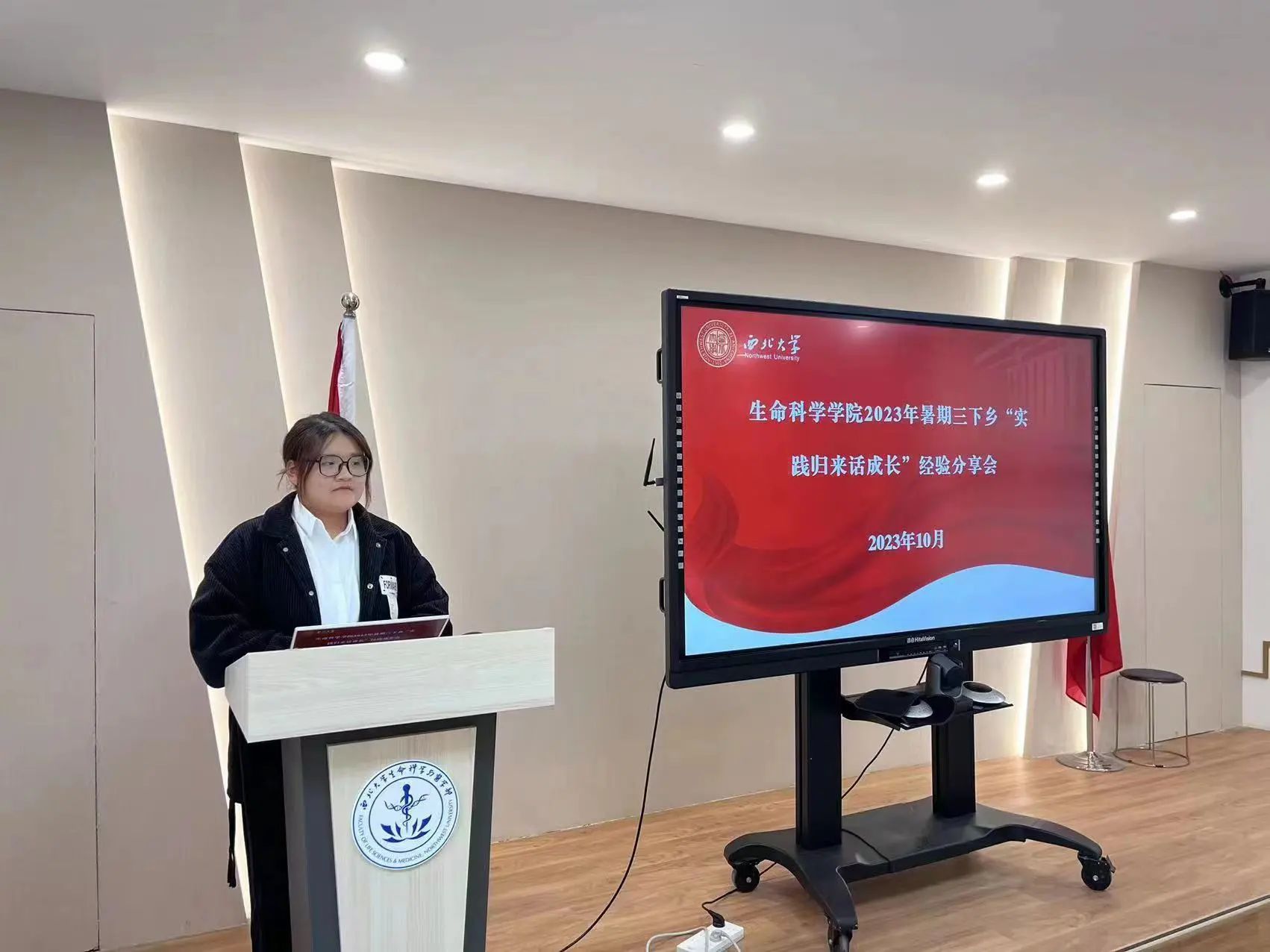 总结分享会上,首先是社会实践“冲蜂队”团队负责人时吉雨同学向大家介绍了团队志愿者们前往安康市紫阳县的初心——为当地胡蜂防治防控工作提供科学指导,以科学技术促进乡村振兴,并详细介绍了如何开展科普知识、劳动教育、实践体验一线消防员科学防蜂工作等经历,重点为大家分享了团队成员对于参加完活动的心得体会,以调查问卷的数据形式展现志愿成果。