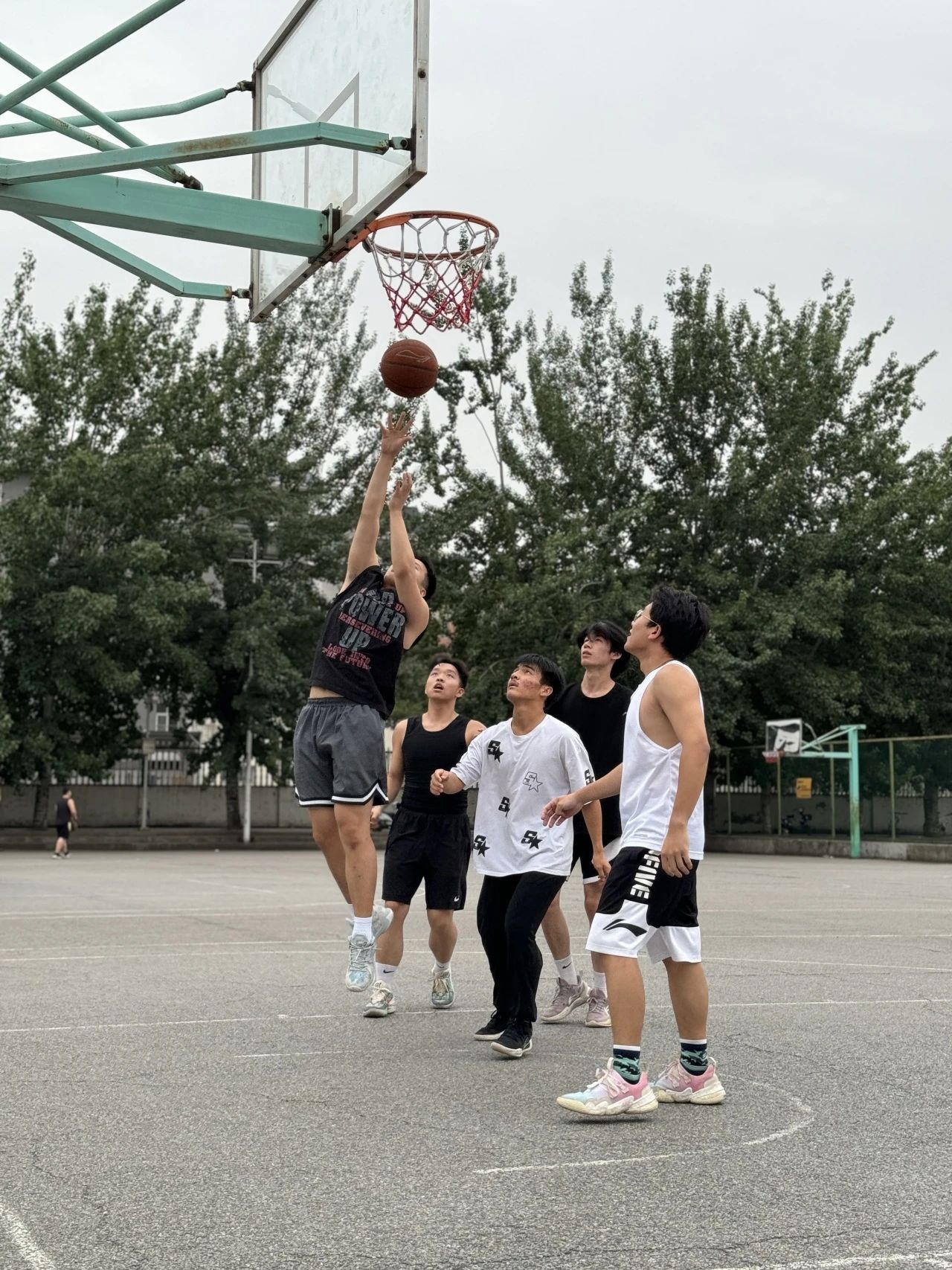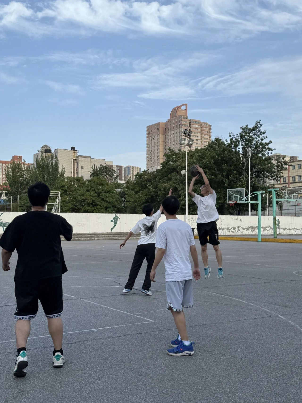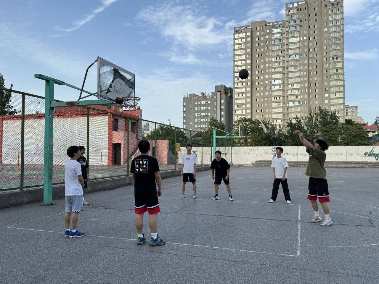 骄阳虽然炙热,却无法压制住运动员们澎湃的激情。每一次跳跃,每一记投篮,都是对青春和热血的热烈颂歌。运动员们的动作流畅而优雅,如同行云流水一般,每一个奔跑、跳跃和投篮都显得那么自然而充满韵律。他们在场上的运球、传球和呐喊,展现了团队间默契的配合和相互支持,彼此间的协作如同精心编排的舞蹈,每一个动作都恰到好处,相得益彰。