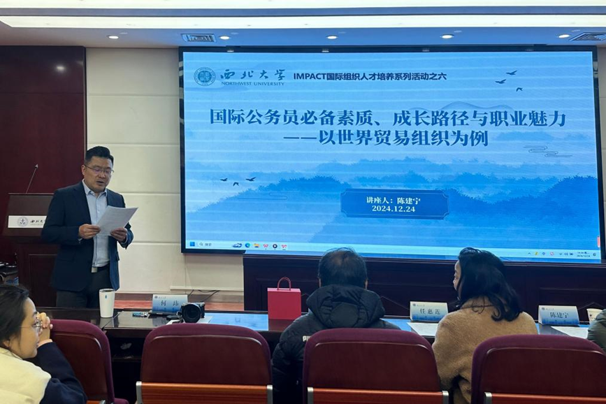 在全球化发展迅速的今天,国际合作与交流日益频繁,国际组织在维护世界和平、促进共同发展中扮演着不可或缺的角色。为响应时代需求,帮助员工拓展国际视野、提升跨文化交流能力,鼓励员工“看见世界、认识世界、走向世界”,深化其对国际组织和全球治理重要意义的认识,2024年12月24日下午,公司于太白校区博望报告厅举办第六期IMPACT 国际组织人才培养专题讲座,以“国际公务员必备素质、成长路径与职业魅力——以世界贸易组织为例”为主题,邀请世界贸易组织国际职员陈建宁先生担任主讲,校国际合作部部长任惠莲,公司党委书记刘小光、外事副经理何玮出席,近百名中外员工参与。活动由公司与国际合作部(国际交流公司)联合主办,何玮副经理主持。