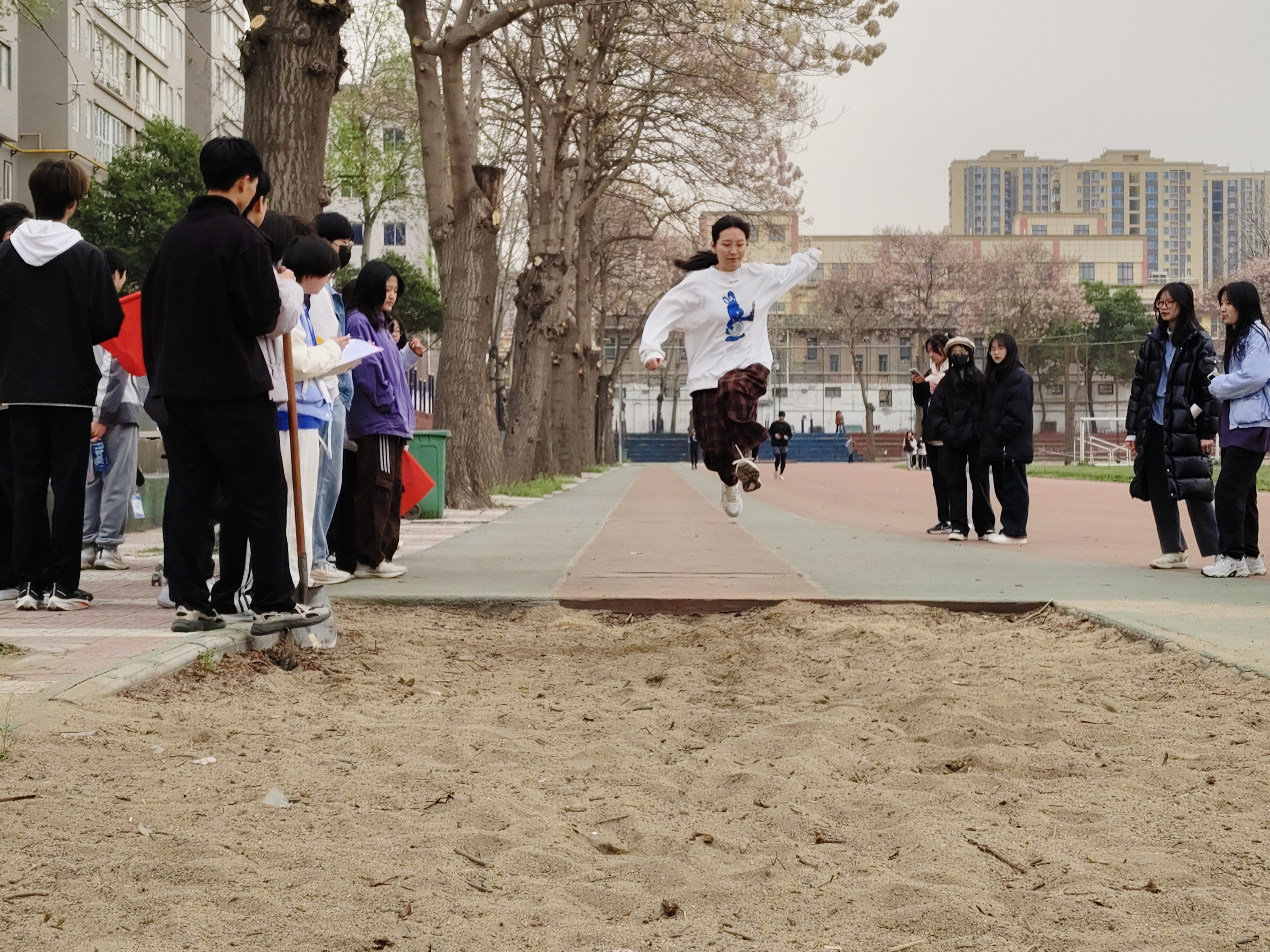 助跑如风,起跳似箭!腾空的瞬间,身体划出优美的弧线,落地扬起一片沙尘。无论远近,跃出的每一步都是青春的印记!