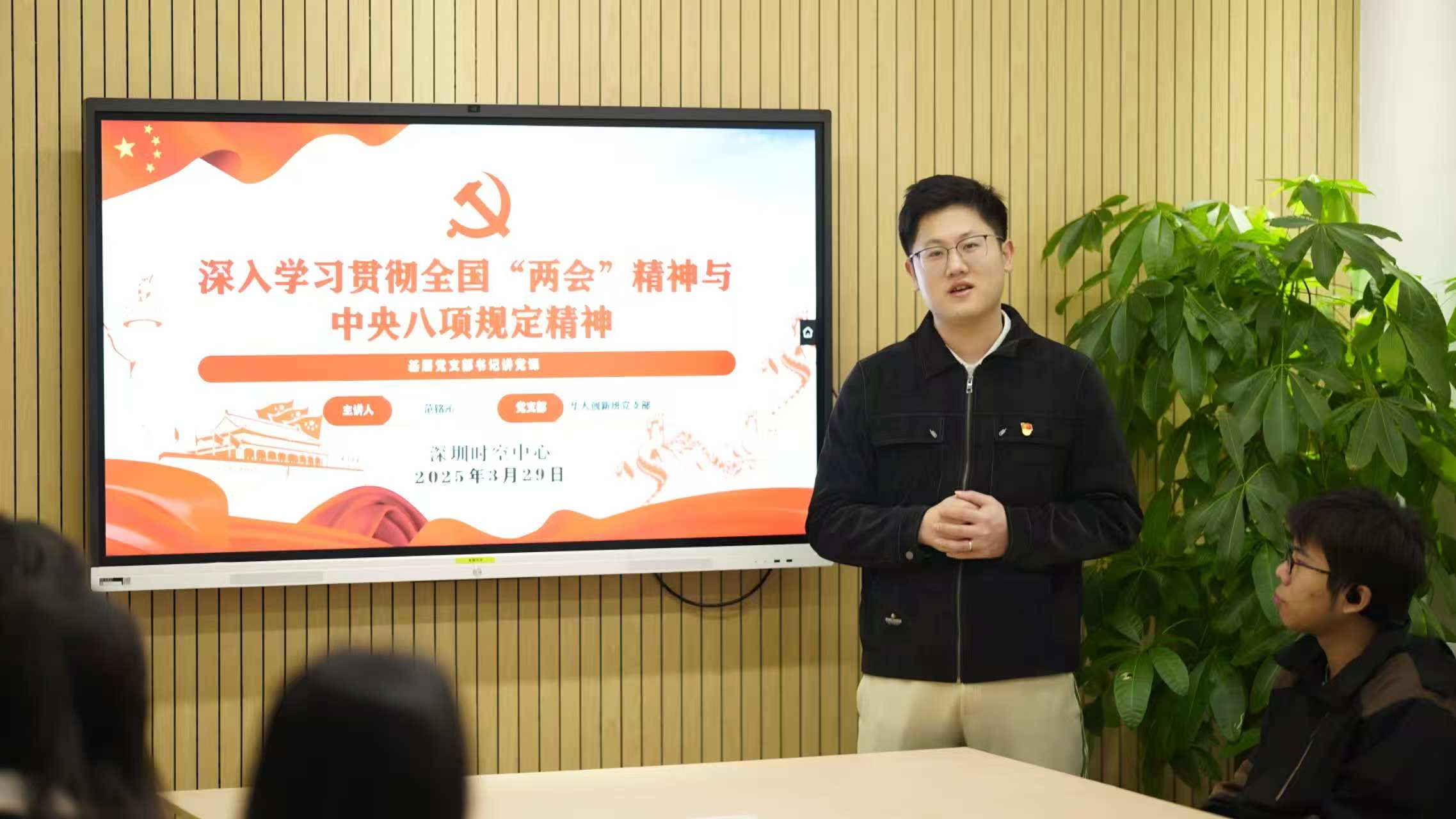 为深入学习贯彻全国两会精神,强化纪律作风建设,同时发挥优秀学子的榜样引领作用。3月29日,华大创新班党支部在深圳华大时空中心组织开展党支部书记讲党课暨朋辈学术经验分享会。活动由党支部书记范铭沁主持,公司党委副书记魏宁、团委书记冯奕忠、党支部副书记刘凌飞及党支部成员共同参与。
