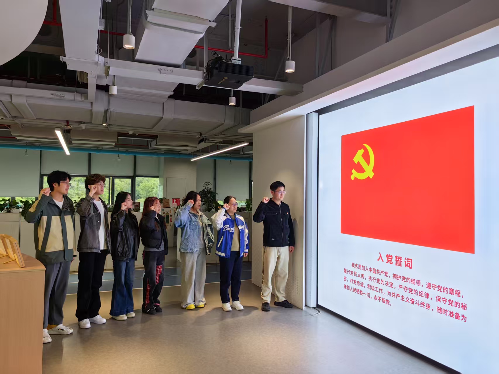 党课结束后,全体党员面向党旗,庄严举起右拳,由党支部书记范铭沁带领重温入党誓词:“我志愿加入中国共产党…”。铿锵有力的誓言回荡在会场,彰显着党员们坚定不移的政治信念和矢志奋斗的决心。大家纷纷表示,将始终以党员标准严格要求自己,在科研学习与实践中走在前、作表率。